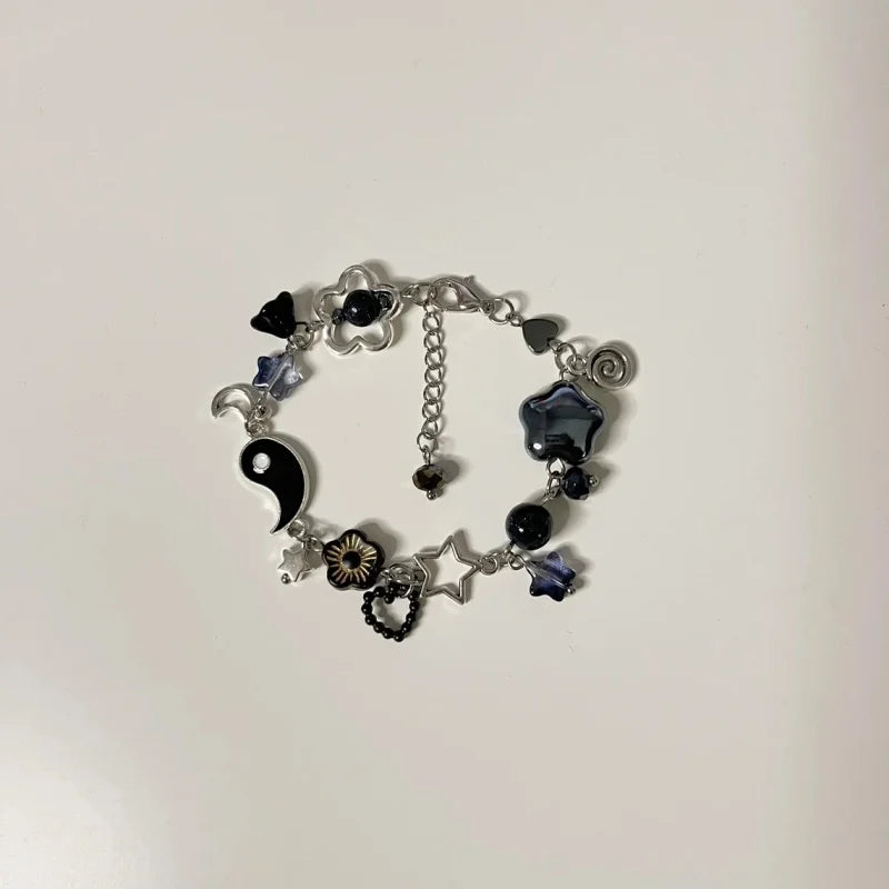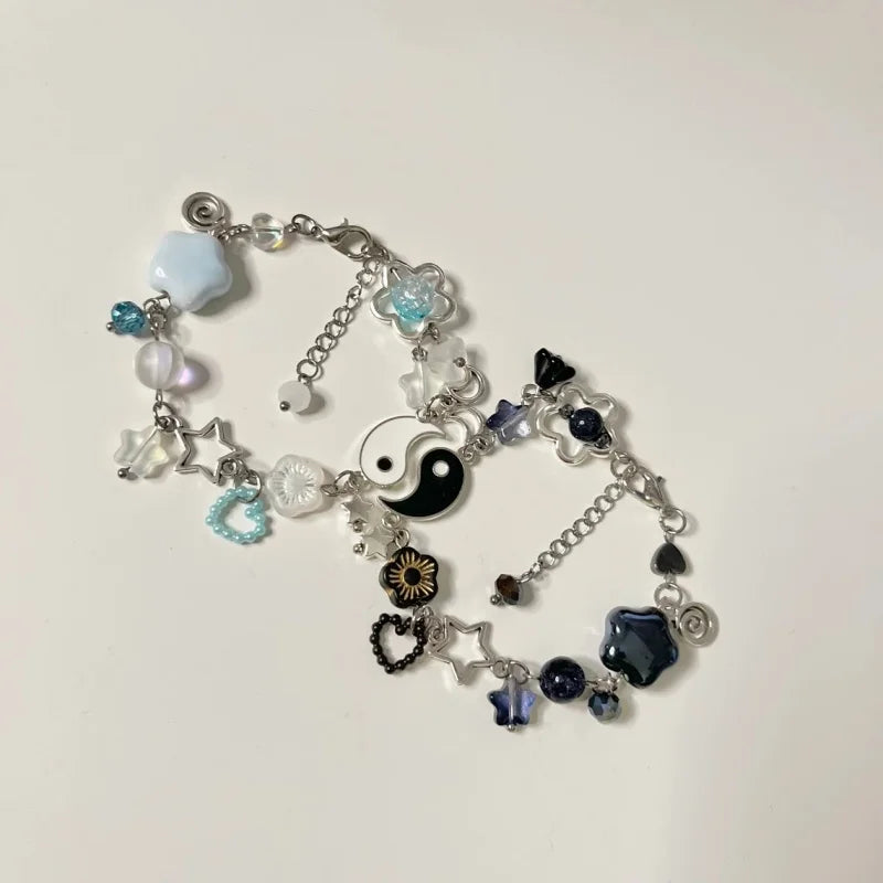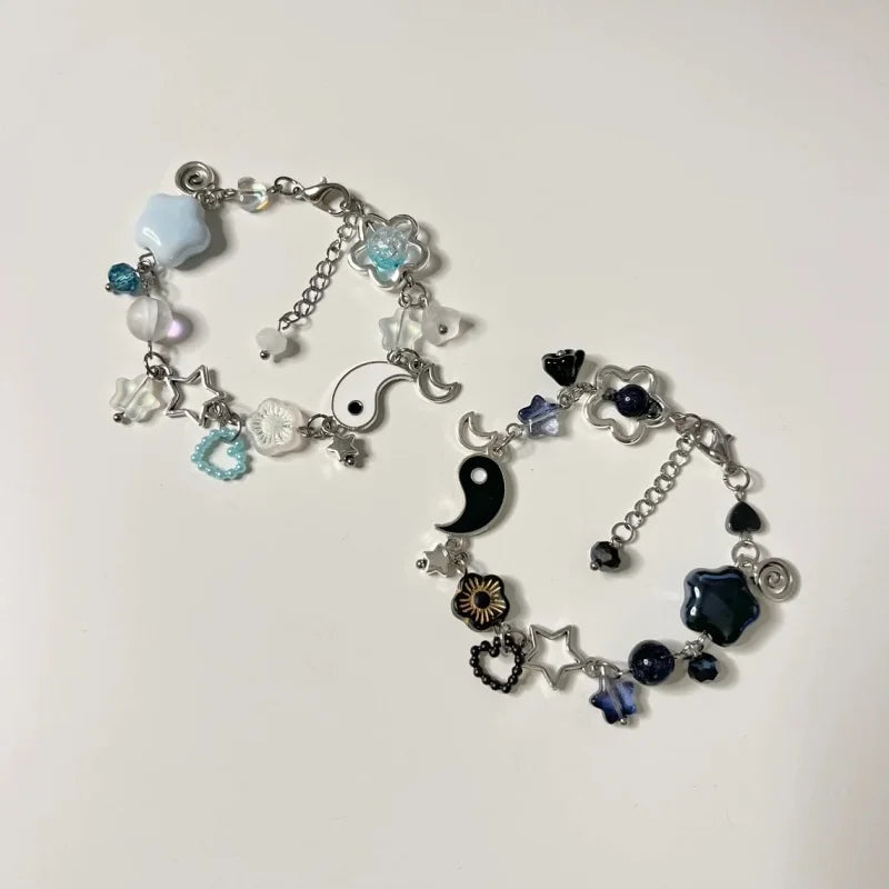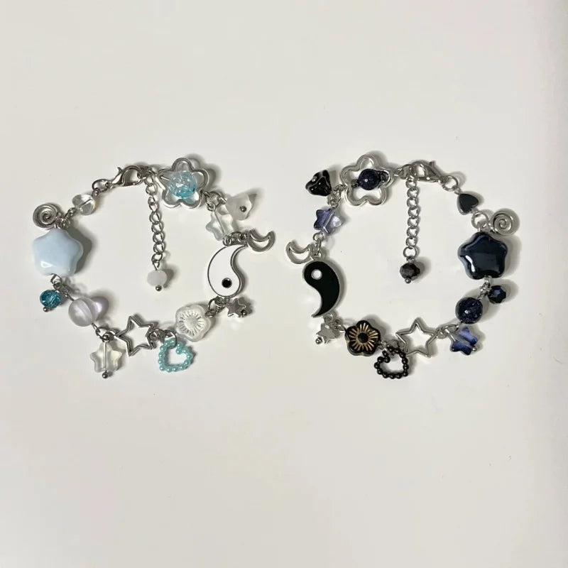 Black and white/light blue charm bracelets inspired by SatoSugu with matching Yin and Yang charms (not magnetic).